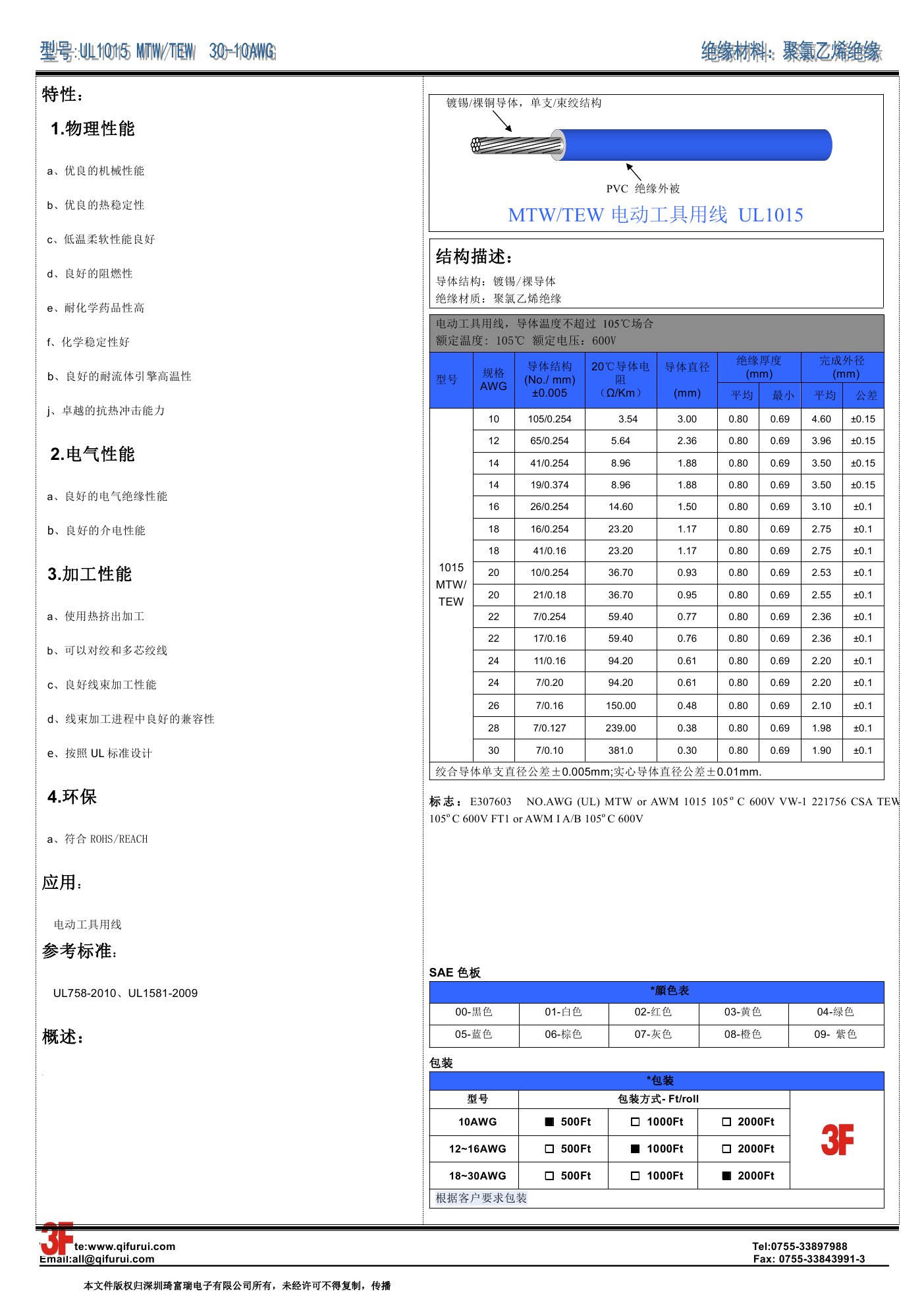 UL1015 MTW TEW
